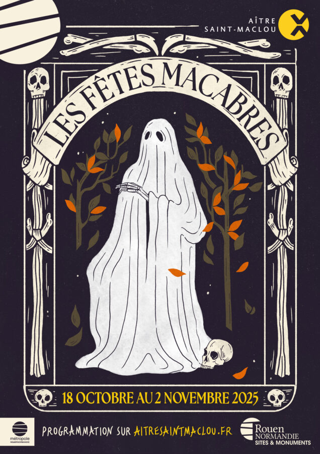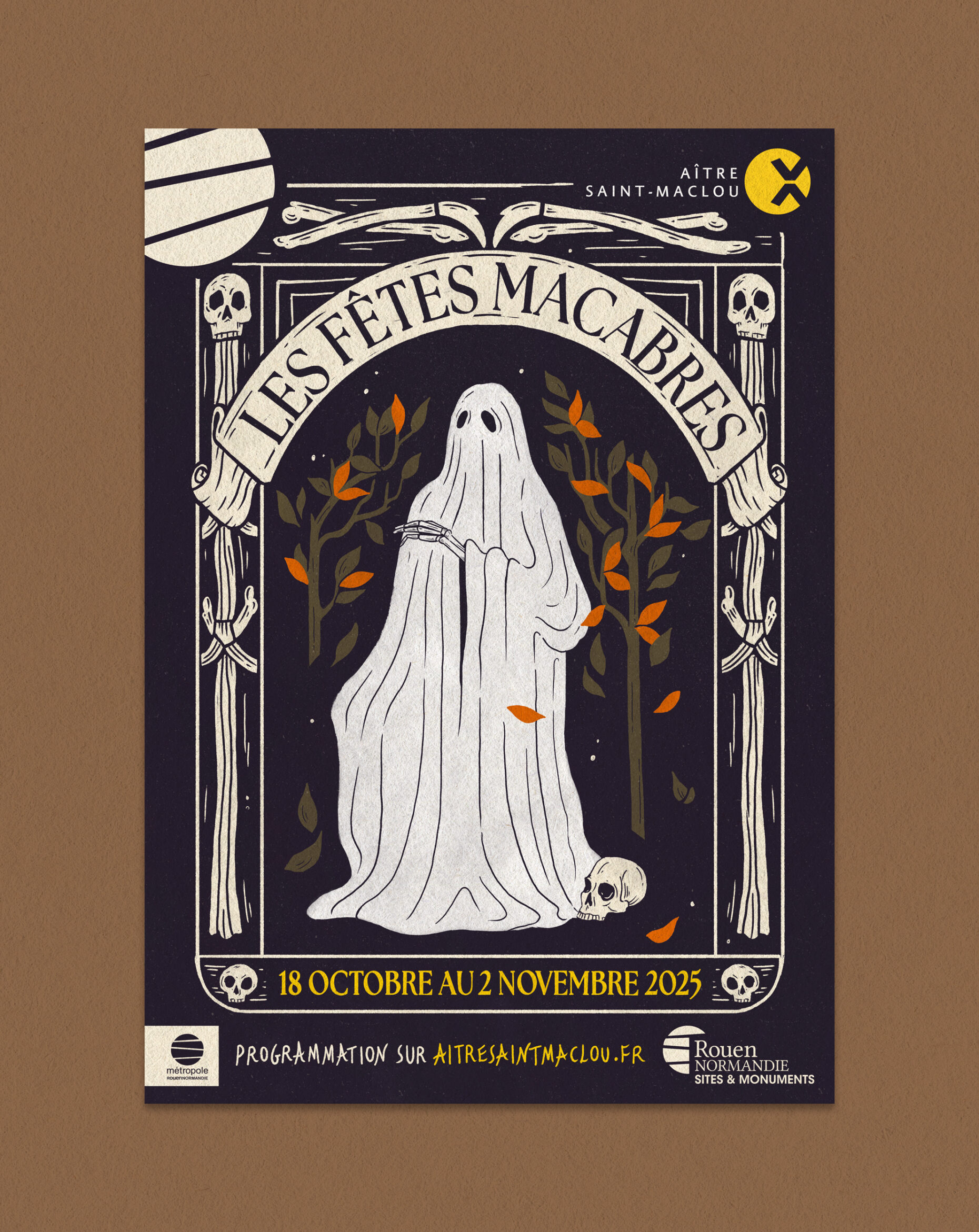 Les Fêtes Macabres Dans Graphisme, Illustration Affiche, flyer et déclinaisons web réalisées à l’occasion des Fêtes macabres à l’Aître Saint-Maclou (Rouen) 23 février 2026